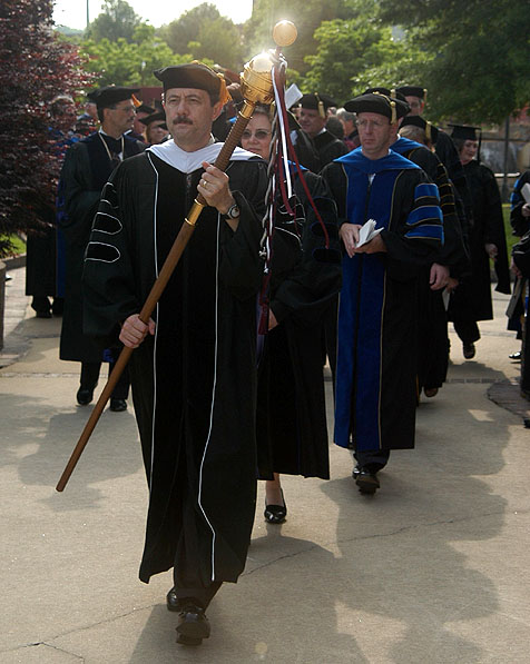 Dr. Mark Wickam, a Upsilon alumnus, led the procession of faculty and graduates.